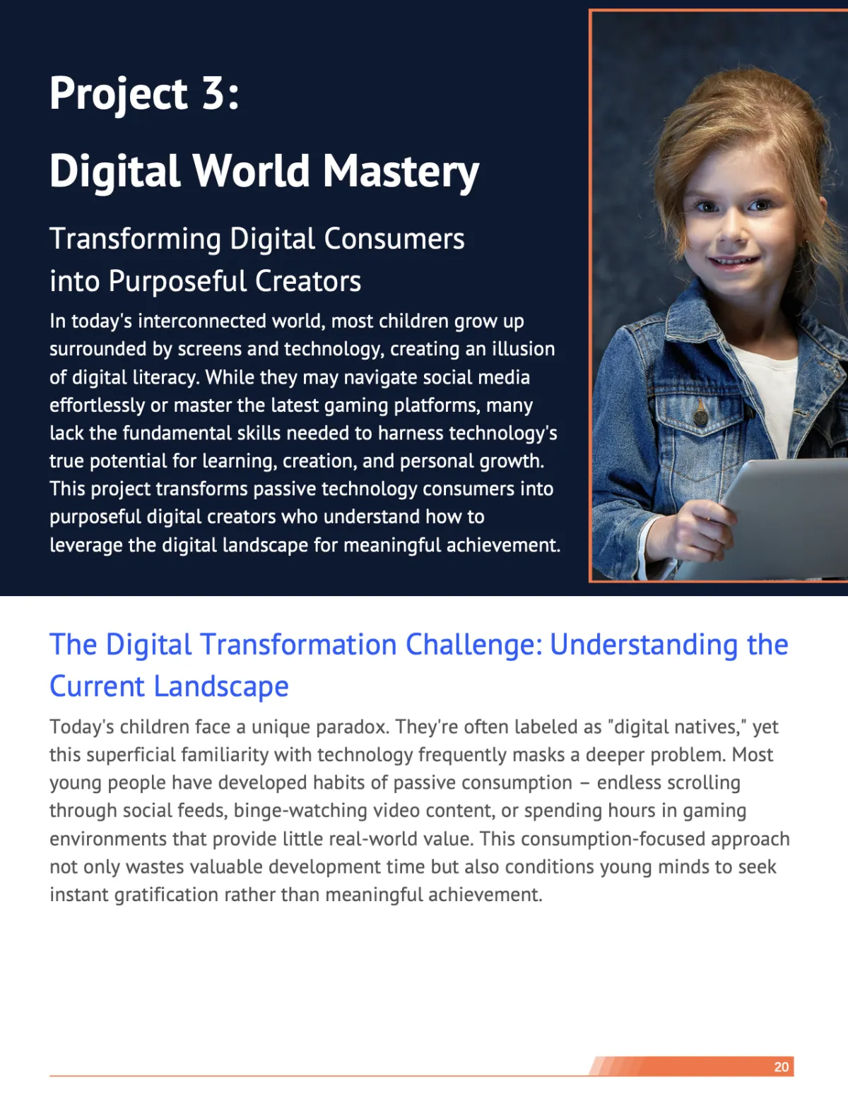 Each project carefully crafted to develop real-world skills through hands-on experience. Perfect for ages 6-12.